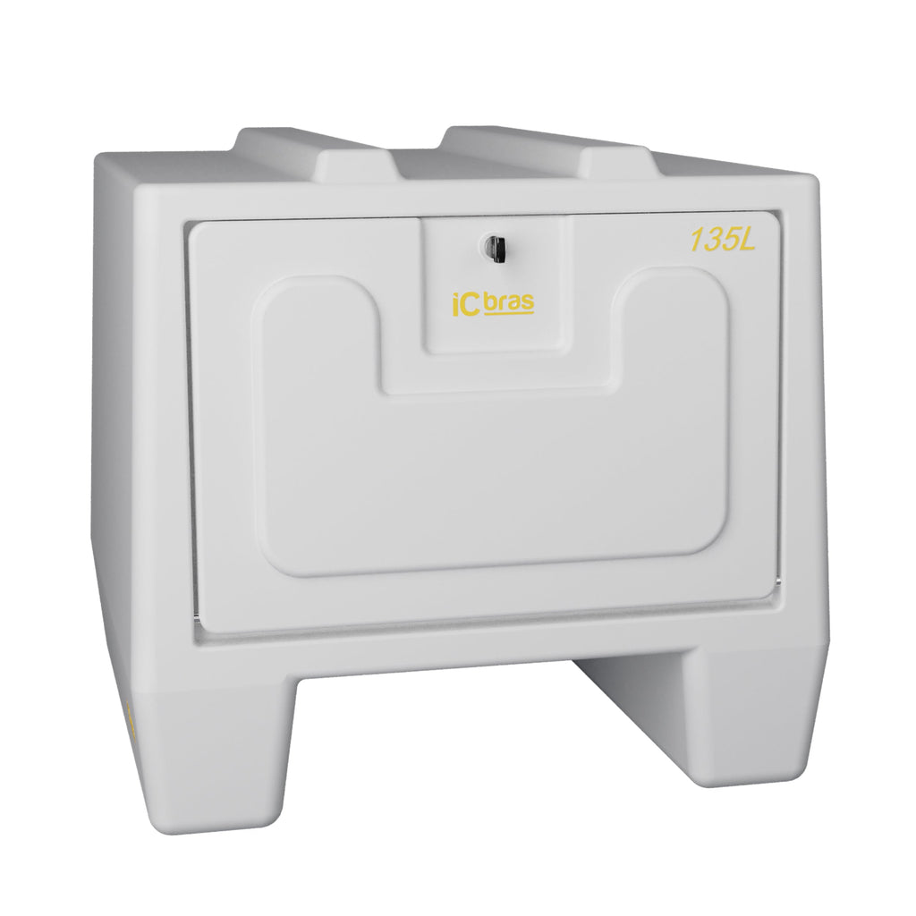 A caixa plástica já vem com fechadura e chave acoplada em seu corpo, sem necessidade de um cadeado para maior segurança.
