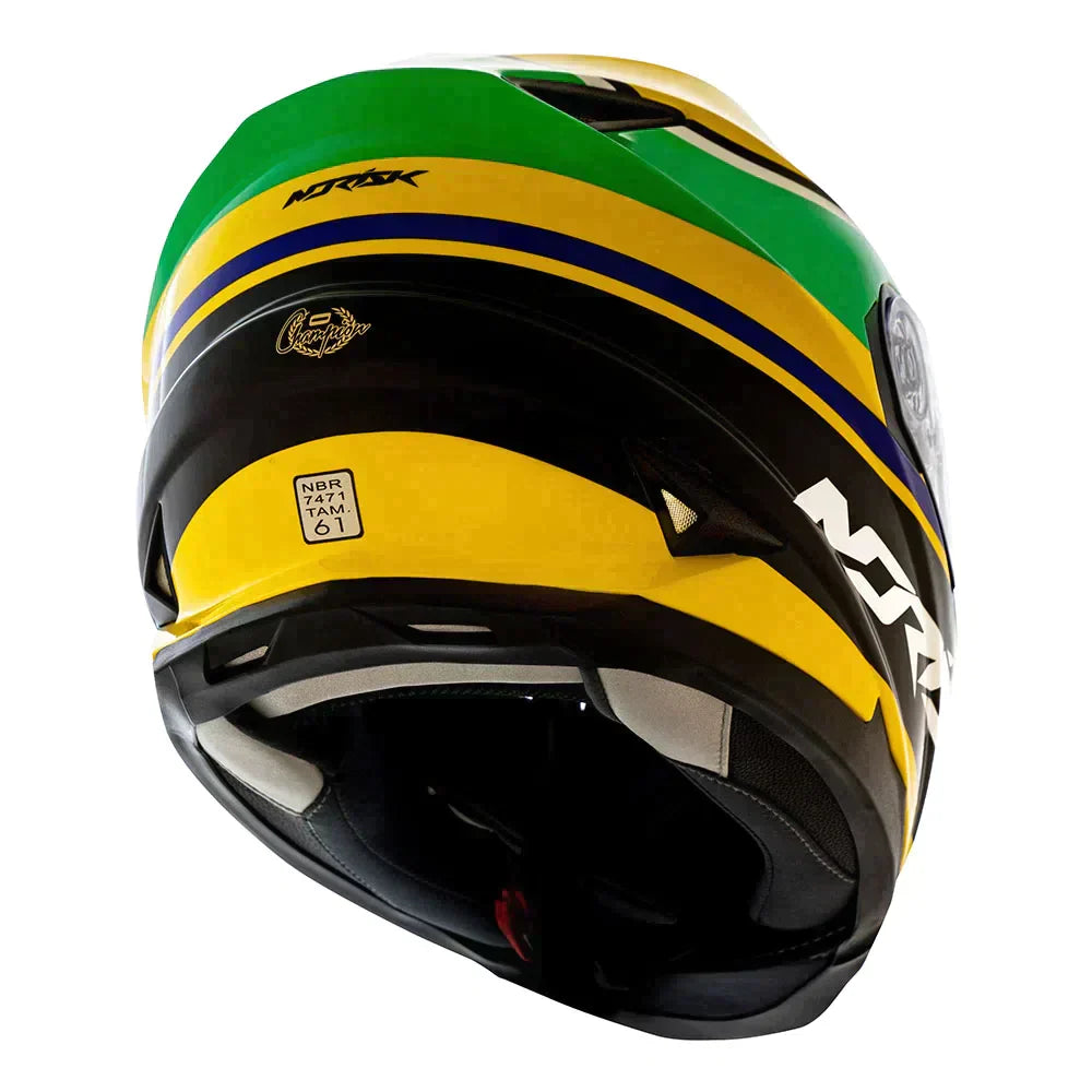 A viseira do Capacete Norisk Soul Champion é de 2mm recebe tratamento UV e anti-risco para maior vida útil. O sistema de troca de viseira é muito simples e rápido, visando a praticidade que o motociclista precisa diariamente. Pensando sempre na maior segurança e conforto, a forração removível e lavável recebe inserções refletivas e tratamento antialérgico. O Capacete Norisk Soul Champion tem bavete removível, narigueira alta e fecho micrométrico de fácil acesso mesmo com luva.