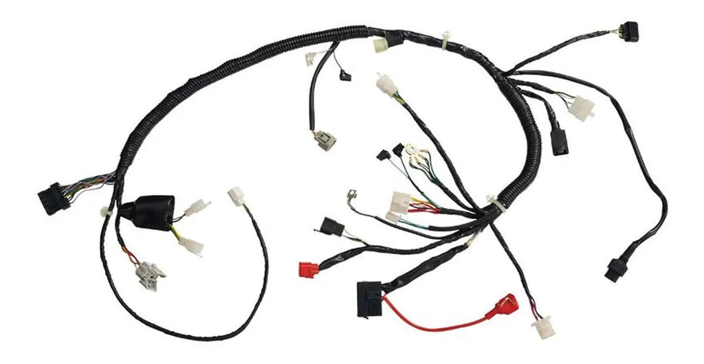 A fiação tem a função de conectar e conduzir a eletricidade entre os componentes elétricos da motocicleta.