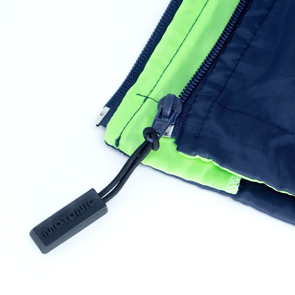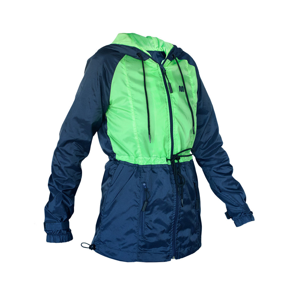 A Jaqueta Corta-vento Feminina azul e verde faz parte do Motonic Start, primeira coleção oficial Motonic Clothing, a linha de vestuário da Motonic.